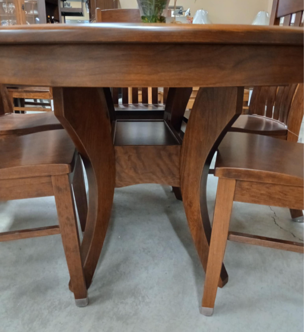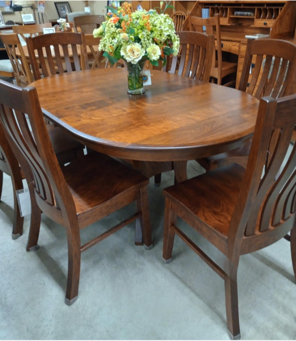 Oval top; Includes 2 self-store leaves (shown with matching chairs available for separate purchase)